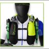 En la parte frontal dispone de capacidad para llevar 2 botellines de 500-600 ml , y 4 bolsillos de distintos tamaños; uno de gran tamaño en en lado derecho, y 3 en el izquierdo.